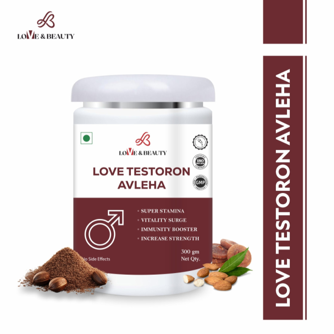 Love Testoron Avleha is a premium Ayurvedic vitality paste designed to deliver super stamina, vitality surge, enhanced strength, and immunity boost. Made up in dry fruit base paste, it combines the natural richness of Badam, Khajoor, Draksh, Apple, Anjeer, Pista, Choti Elaichi, Safed Musli, Ashwagandha, and Kesar, along with the restorative power of classical bhasmas like Vang Bhasma, Swarn Mukshik Bhasma, Ropya Bhasma, Moti Pishti, Parval Pishti, Abarak Bhasma, and Swarn Bhasma.